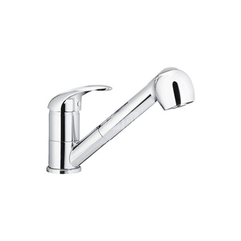 Bateria zlewozmywakowa stojąca KFA Armatura INDIRA, obrot. wylewka, kolor chrom, z wyciąganym natryskiem, mosiądz