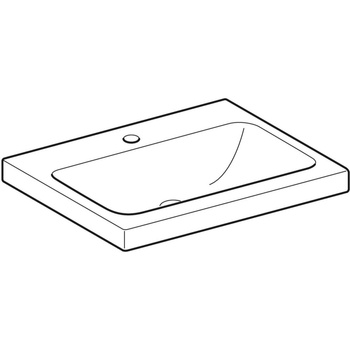 ( ilość produktów: 303 )Umywalka GEBERIT iCon Light prostokątna, biała, 600mm, otwór na baterię na środku, stawiana na blat, bez odpływu przelewowego, półka od ściany