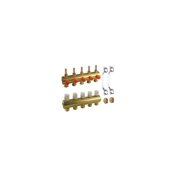 Rozdzielacz do ogrzewania podłogowego GIACOMINI R553FK 5-obieg. mosiądz 1'' x gzm 18 + przepływomierz + termostat + termometr + zawór napełn/spust + odpowietrznik + zawór przy przyłączu