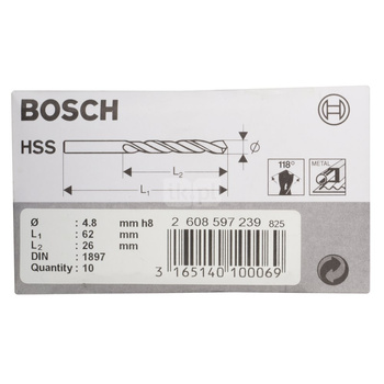 Wiertła do blach HSS-R, DIN 1897 4,8x62 10 szt.