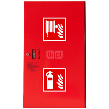 ( ilość produktów: 592 )Hydrant DN52 zawieszany z koszem, z miejscem na gaśnicę obok kosza, wąż 2x20m, zamek patent, RAL 3000