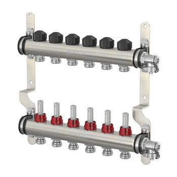 ROZDZIELACZ 1" ZE STALI NIERDZEWNEJ 6 OBWODÓW Z ROTAMETREM