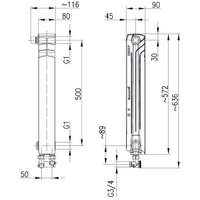 Element grzejnikowy lewy G500 F/D/1 z jonami srebra, z dol. zas. krzyż. i zesp. przył. prostym [50 x 50]
