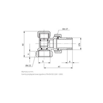 PHA-035/1 G3/4xG3/4 PN10 DN15 Zespół zaworów grzejnikowych bez nypli K CuZn-C PN-M-75002