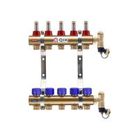 Rozdzielacz do ogrzewania podłogowego QIK BASIC II TN 5-obieg. mosiądz gw 1'' x gz 3/4'' + przepływomierz