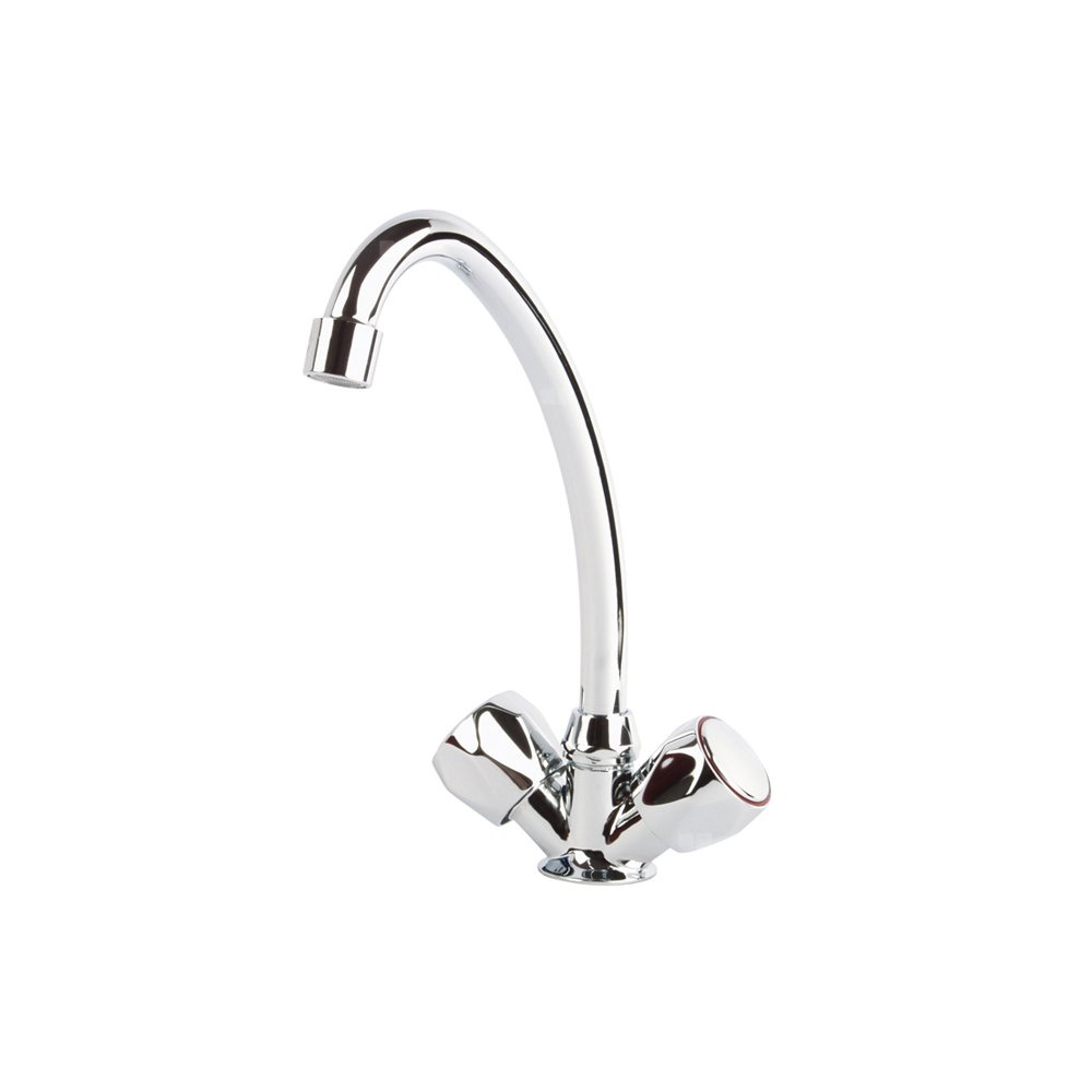 Bateria jednootworowa, dwuuchwytowa, z ruchomą wylewką. Klasa przepływu: A. Grupa akustyczna: II.