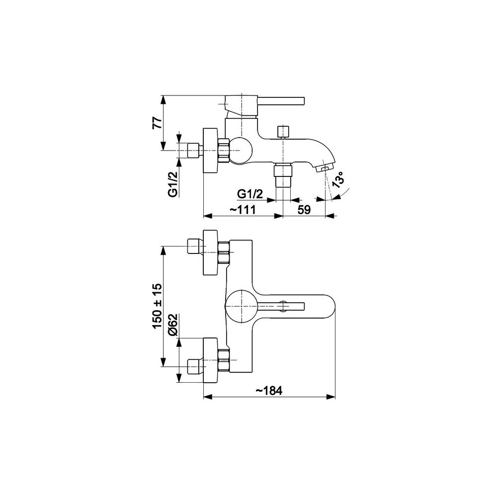 Rozstaw przyłączy [mm]: 150 ± 15 mm