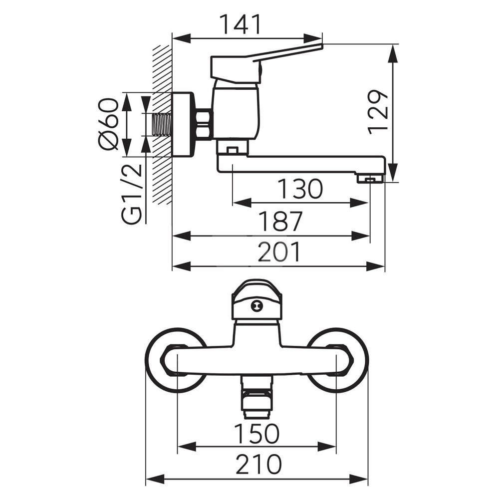 - przyłącze mimośrodowe G1/2 rozstaw 150 ± 20 mm