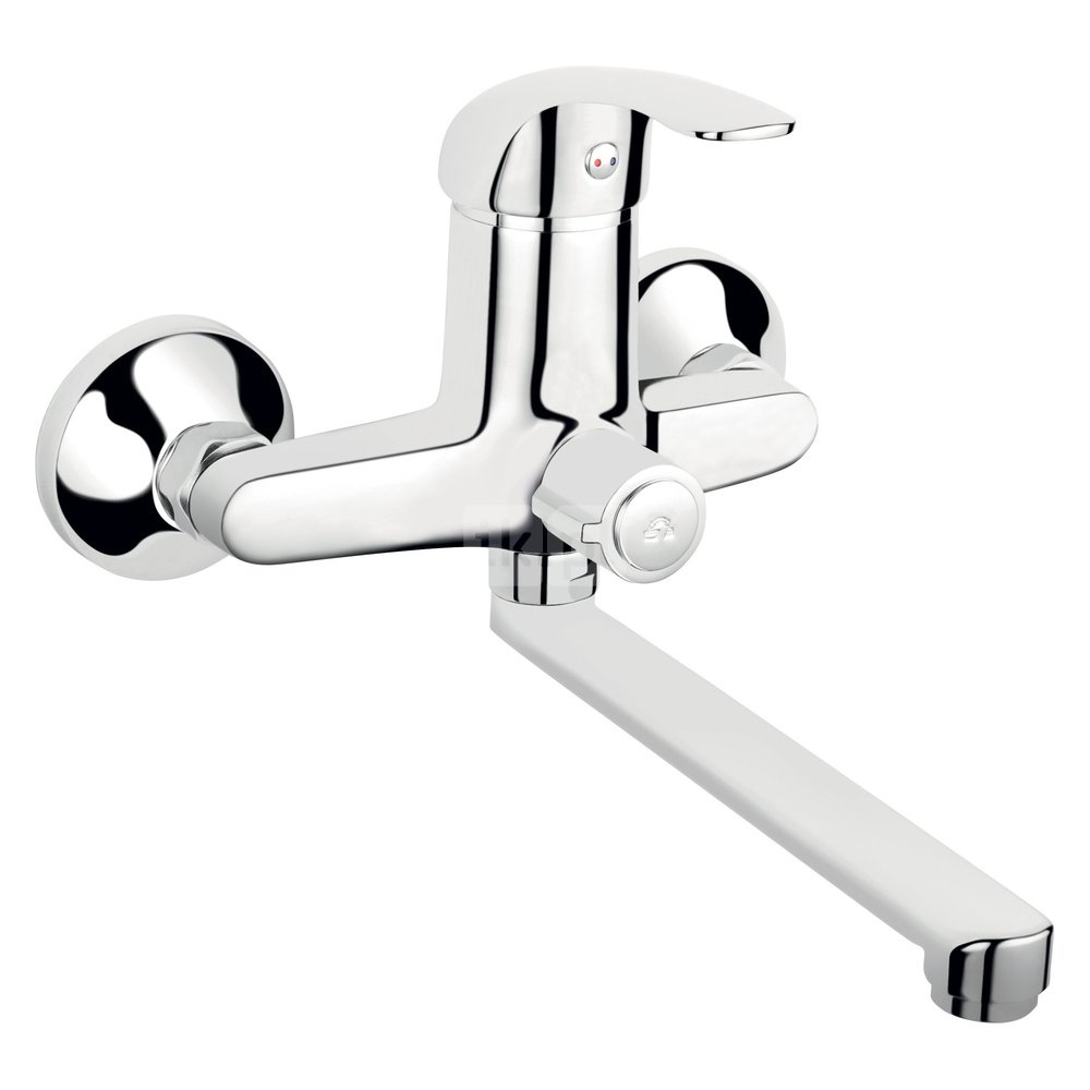 Bateria umywalkowo-wannowa ścienna z przyłączem natrysku, chrom: