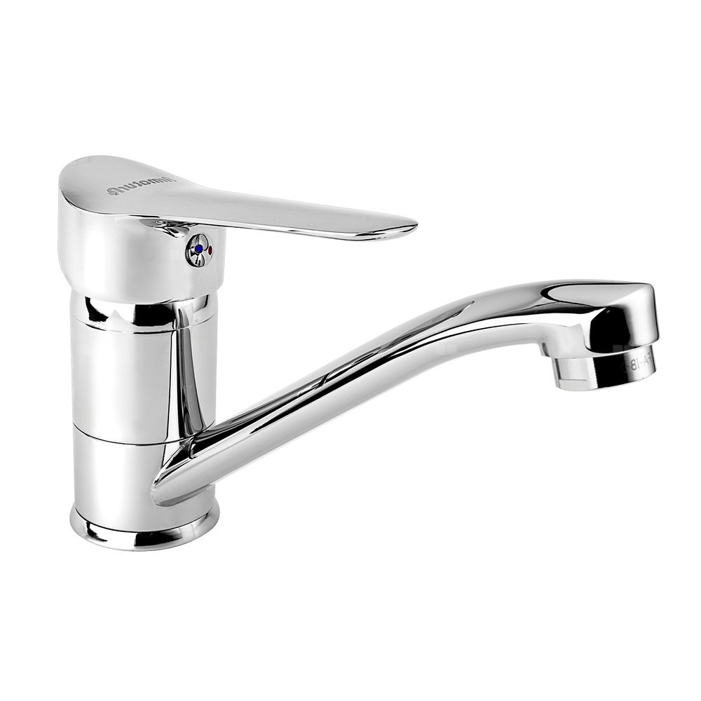 Bateria umywalkowa stojąca KFA Armatura LEONIT, chrom, obrotowa wylewka, montaż blat / otwór na baterię