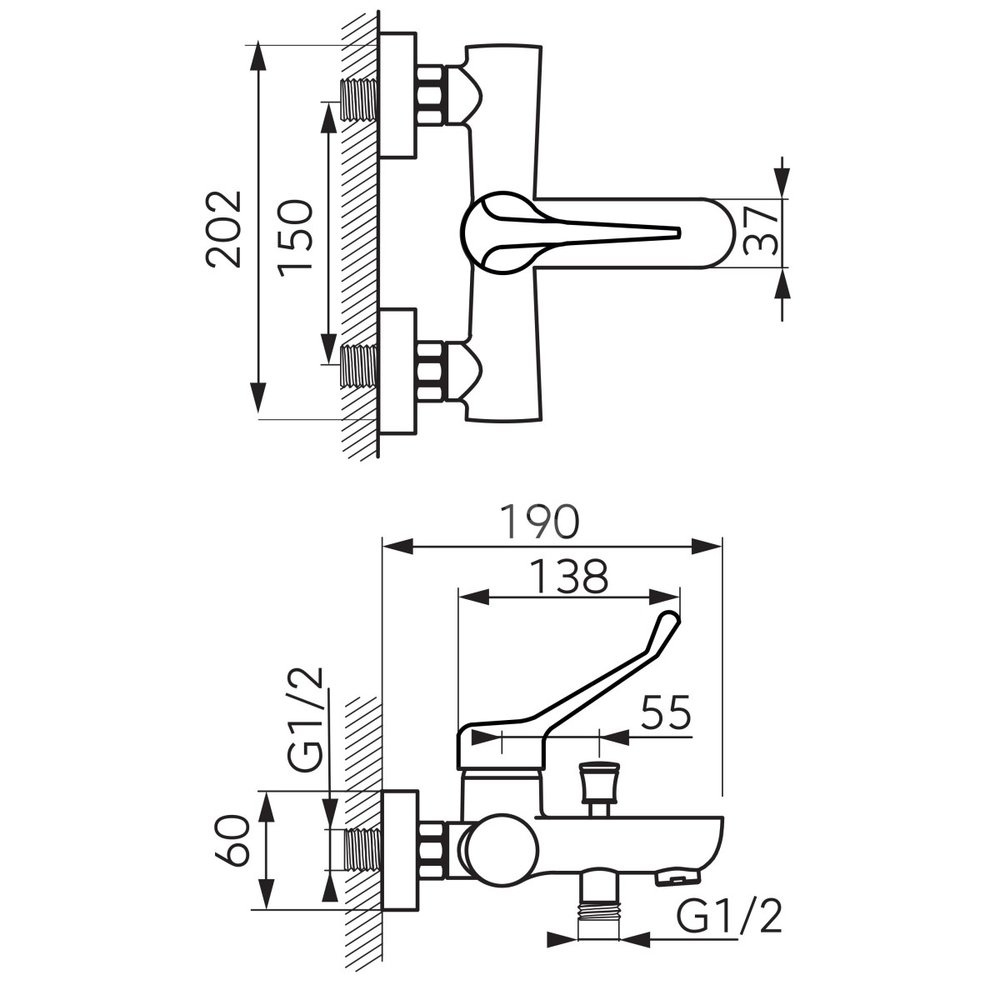 - przyłącze mimośrodowe G1/2 rozstaw 150 ± 20 mm