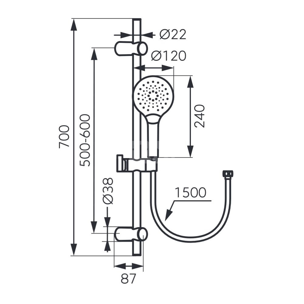 • uchwyt przesuwny z regulacją kąta ustawienia rączki natrysku