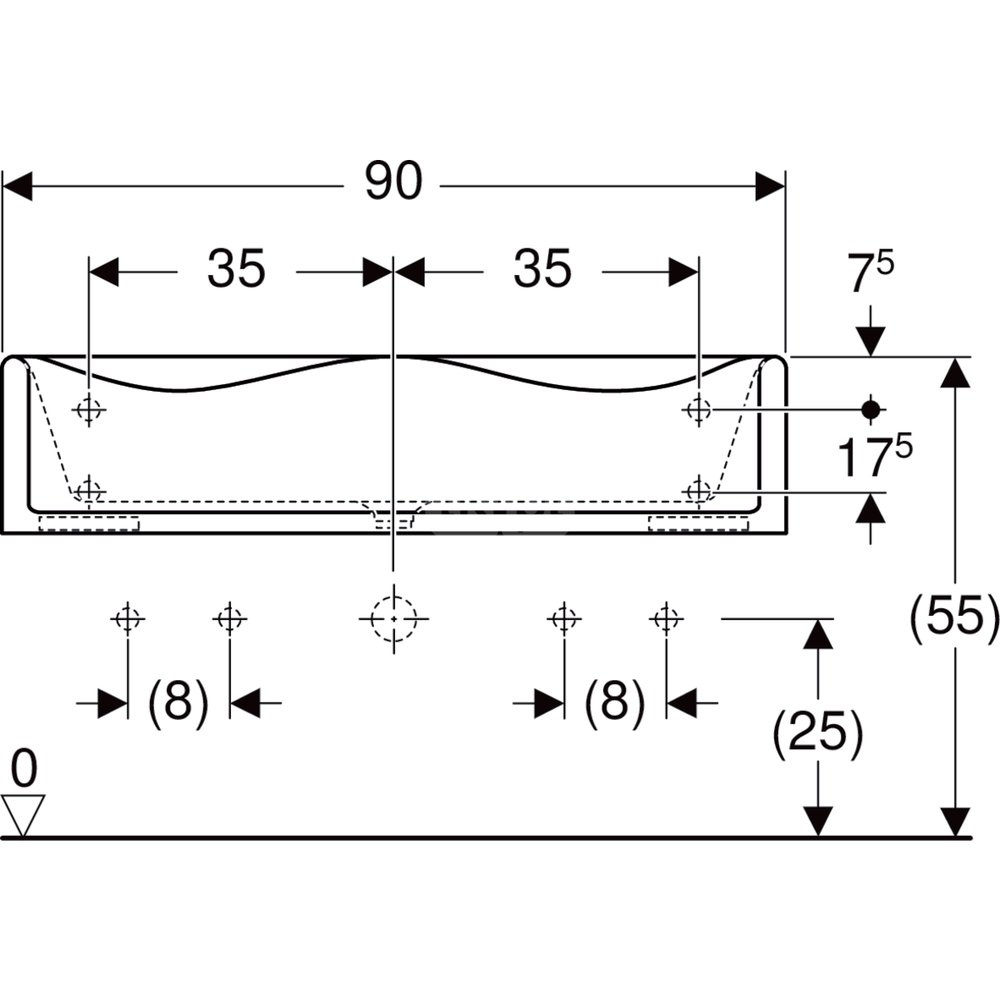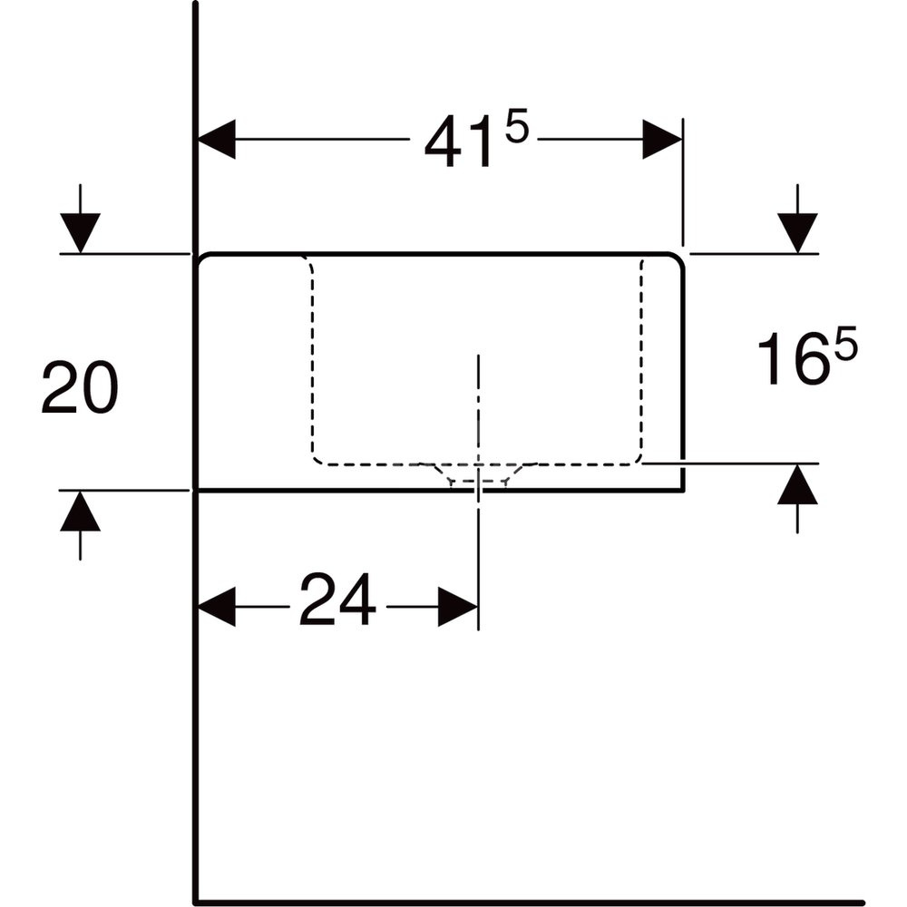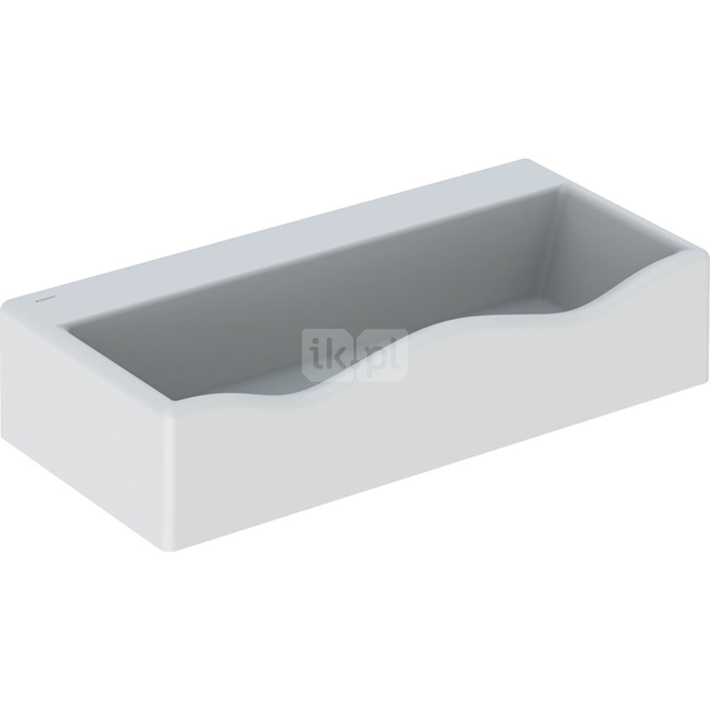 Umywalka GEBERIT Bambini 2-stanowiskowa prostokątna, biała, 900mm, bez otworu na baterię, ściana, bez odpływu przelewowego, półka od ściany