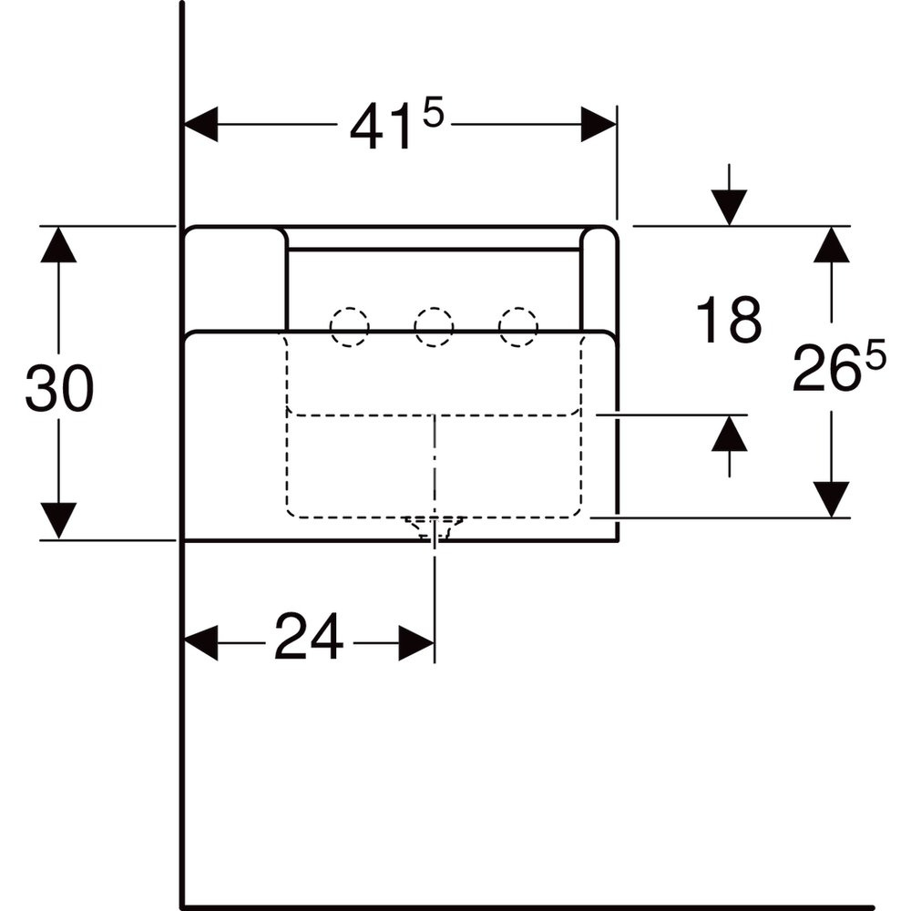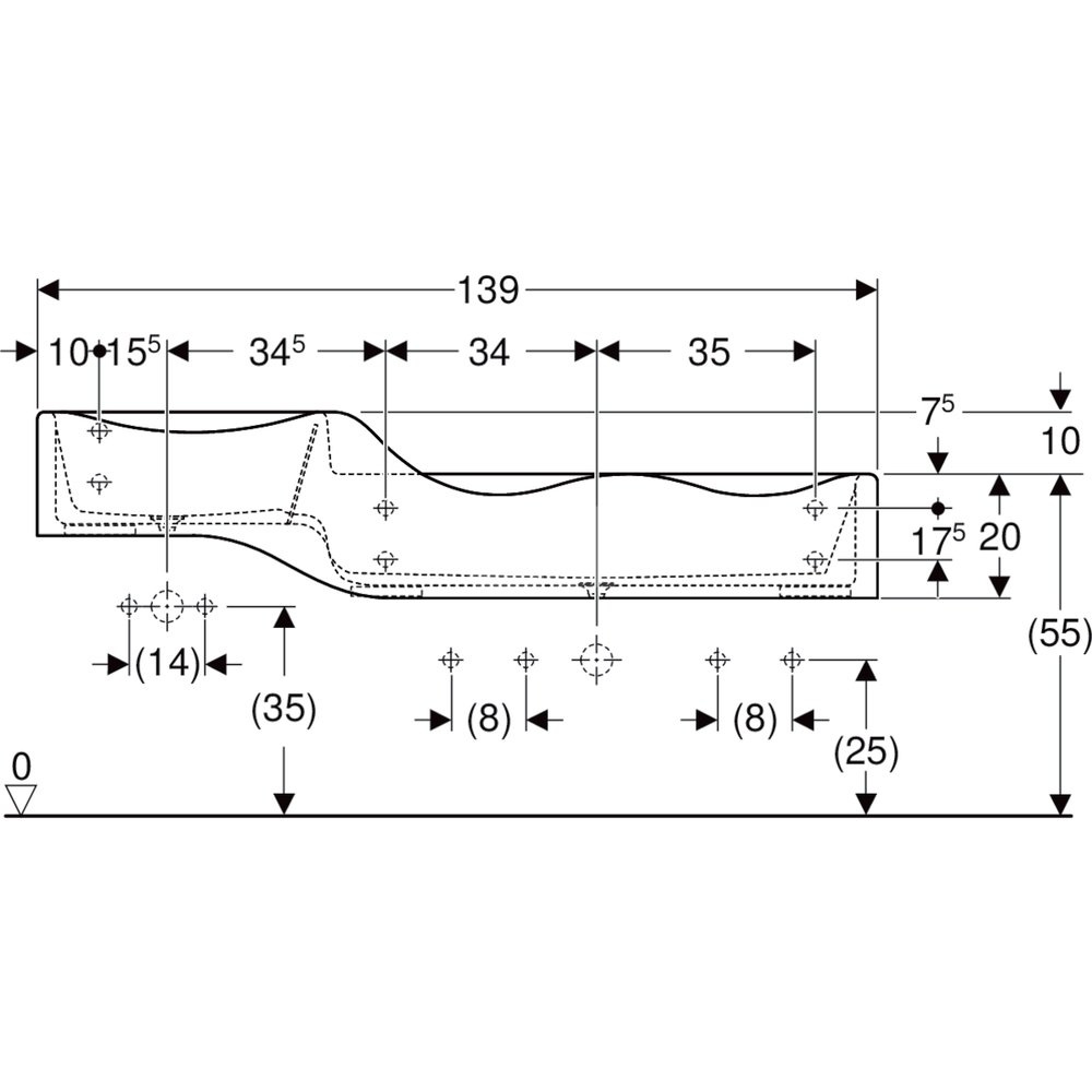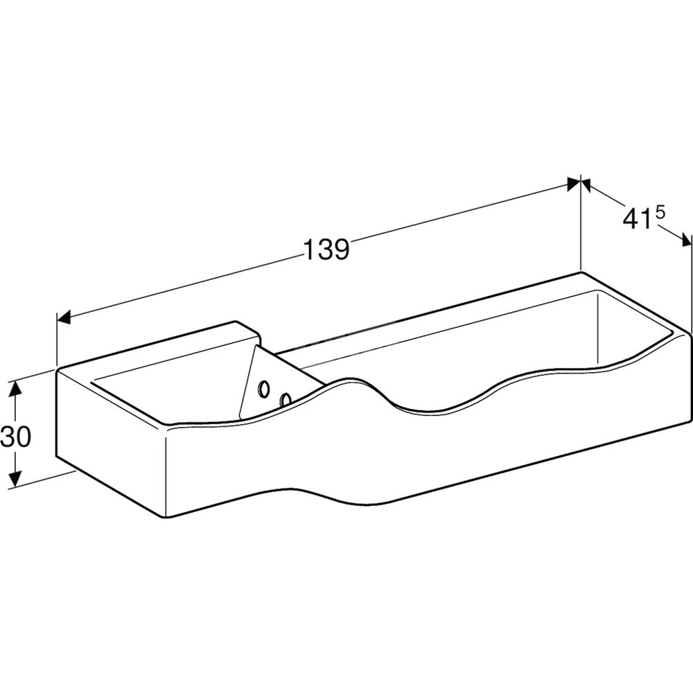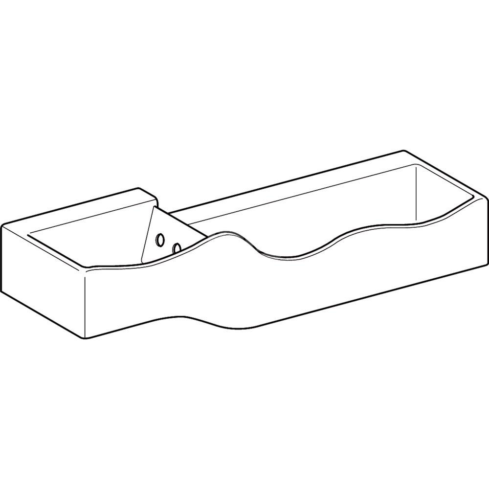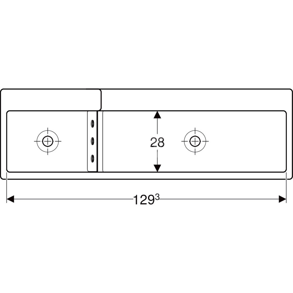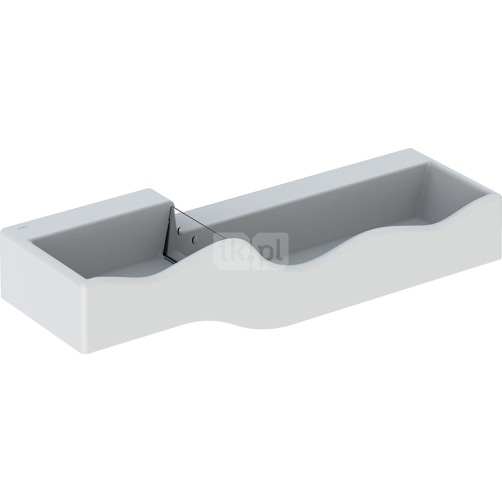 Umywalka GEBERIT Bambini podwójna 3-stanowiskowa prostokątna (rynna, bez elementów dekoracyjnych), biała, 1390mm, bez otworu na baterię, bez odpływu przelewowego, półka od ściany