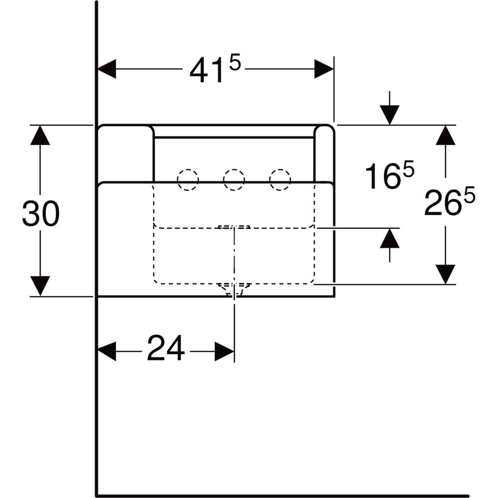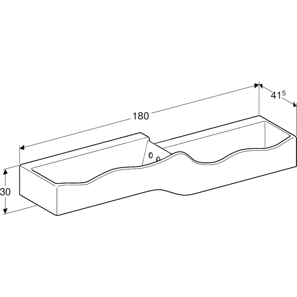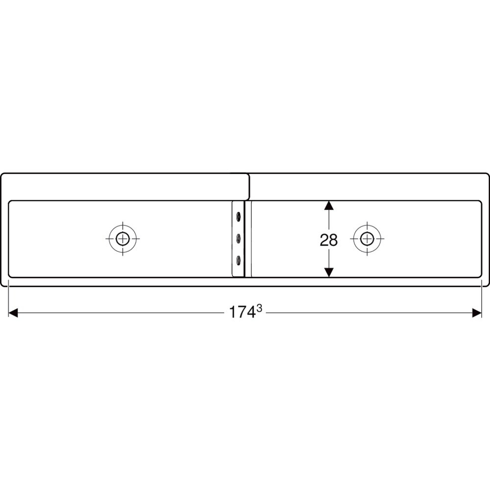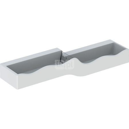 Umywalka GEBERIT Bambini podwójna 4-stanowiskowa prostokątna (rynna, bez elementów dekoracyjnych), biała, 1800mm, bez otworu na baterię, bez odpływu przelewowego, półka od ściany