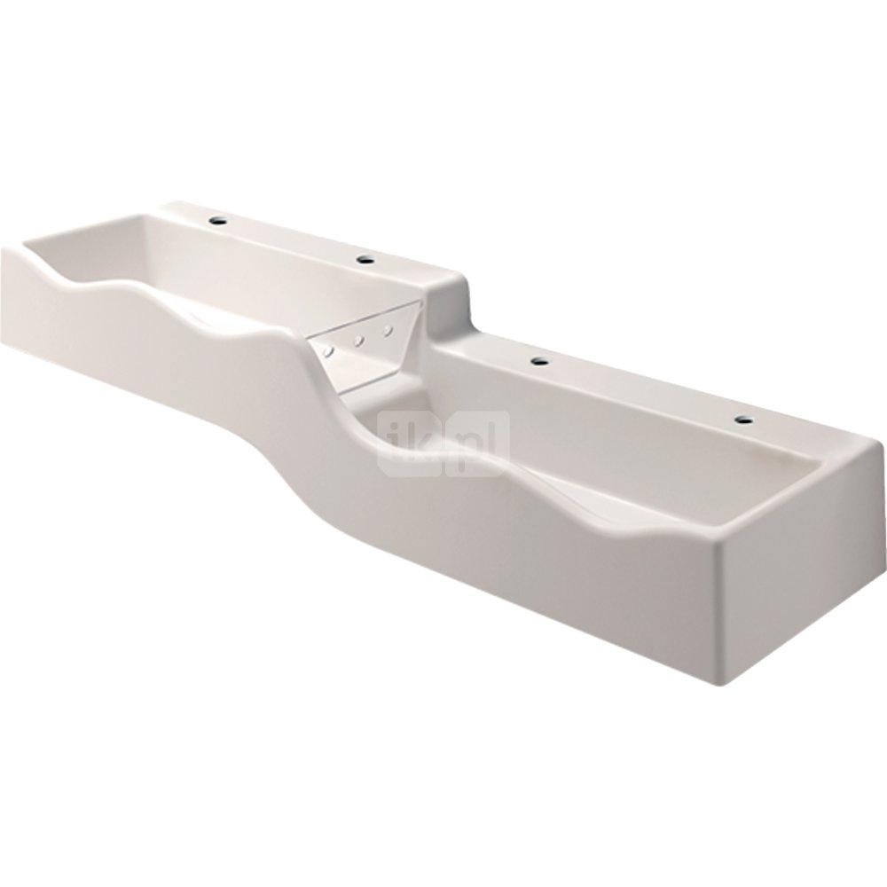 Umywalka GEBERIT Bambini podwójna 4-stanowiskowa prostokątna (rynna, bez elementów dekoracyjnych), biała, 1800mm, otwór na baterię z lewej i prawy, bez odpływu przelewowego, półka od ściany