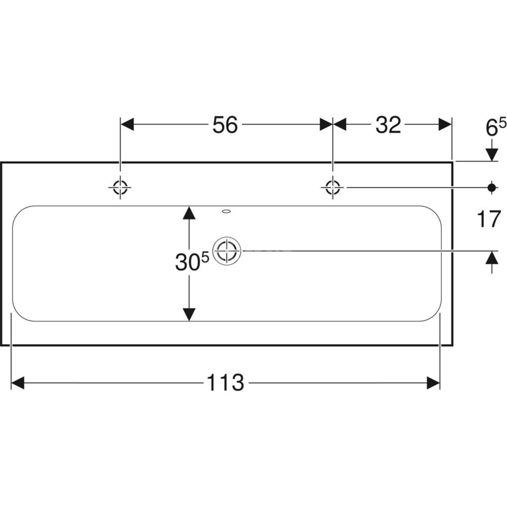 Umywalka GEBERIT iCon Light 2-stanowiskowa prostokątna, biała, 1200mm, otwór na baterię z lewej i prawy, z odpływem przelewowym, półka od ściany