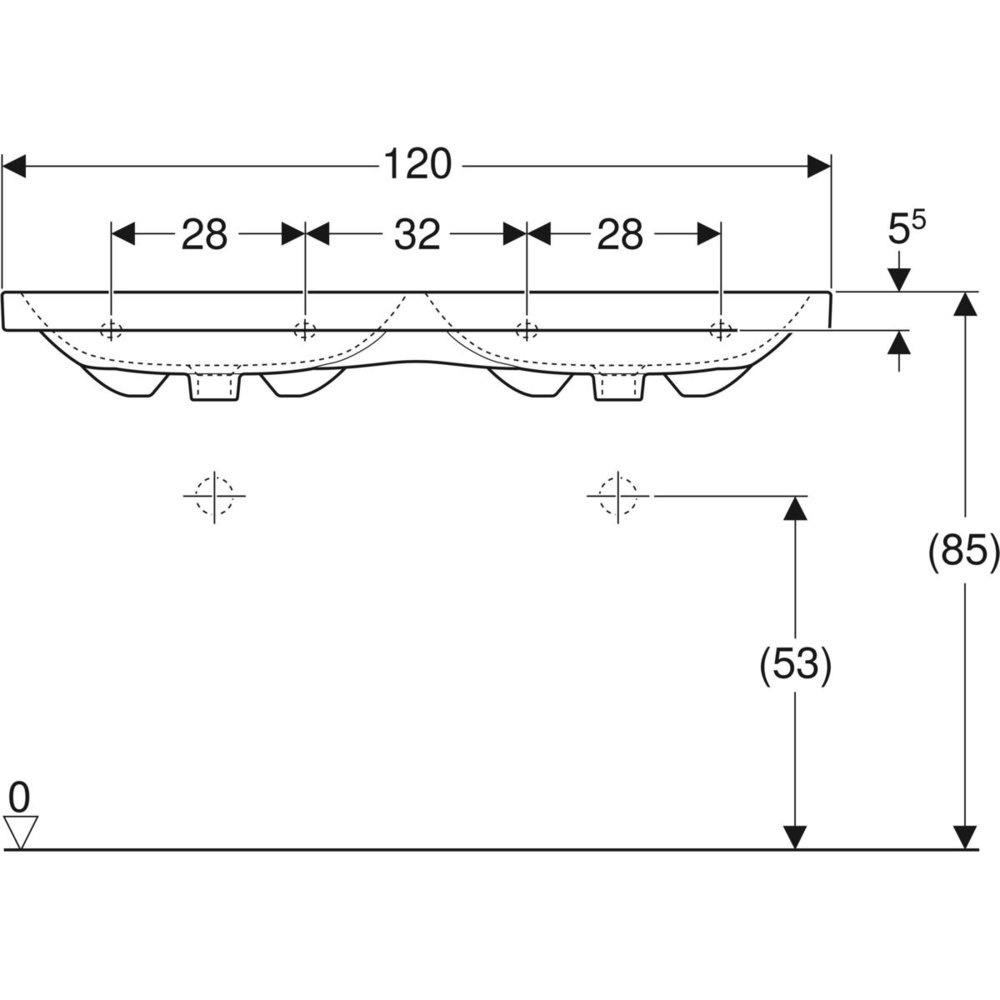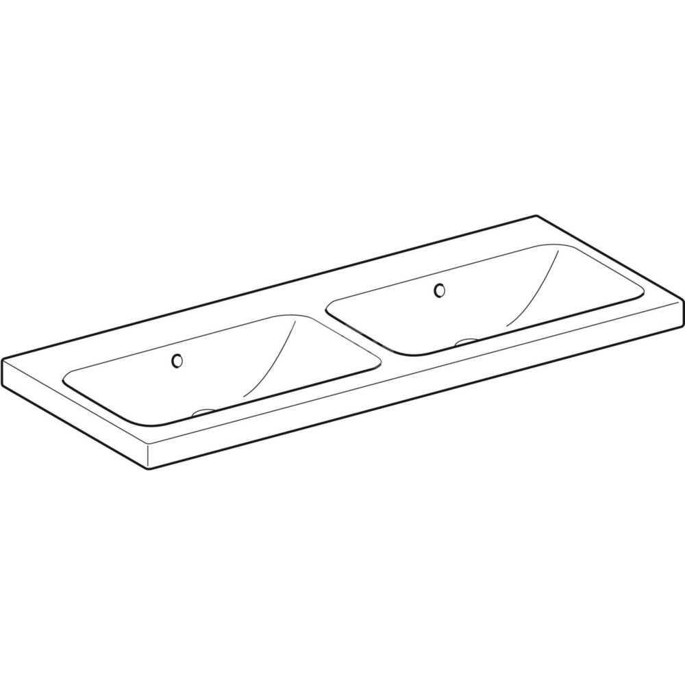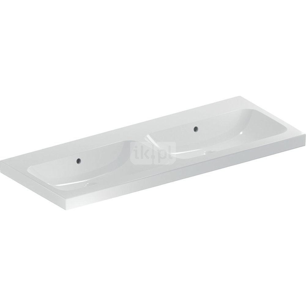 Umywalka GEBERIT iCon Light podwójna 2-stanowiskowa prostokątna, biała, 1200mm, bez otworu na baterię, z odpływem przelewowym, półka od ściany