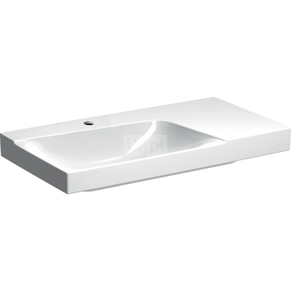 Umywalka GEBERIT Xeno2 prostokątna, biała, 485mm, otwór na baterię na środku, bez odpływu przelewowego, półka z prawej