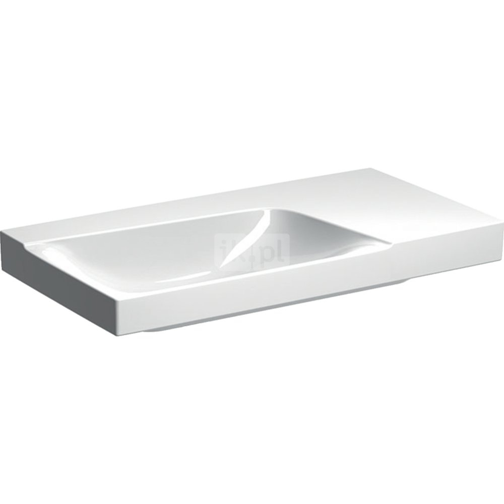 Umywalka GEBERIT Xeno2 prostokątna, biała, 900mm, bez otworu na baterię, bez odpływu przelewowego, półka z prawej