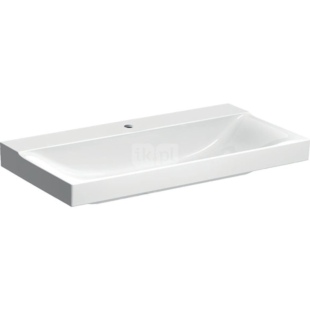 Umywalka GEBERIT Xeno2 prostokątna, biała, 900mm, otwór na baterię na środku, bez odpływu przelewowego, półka od ściany