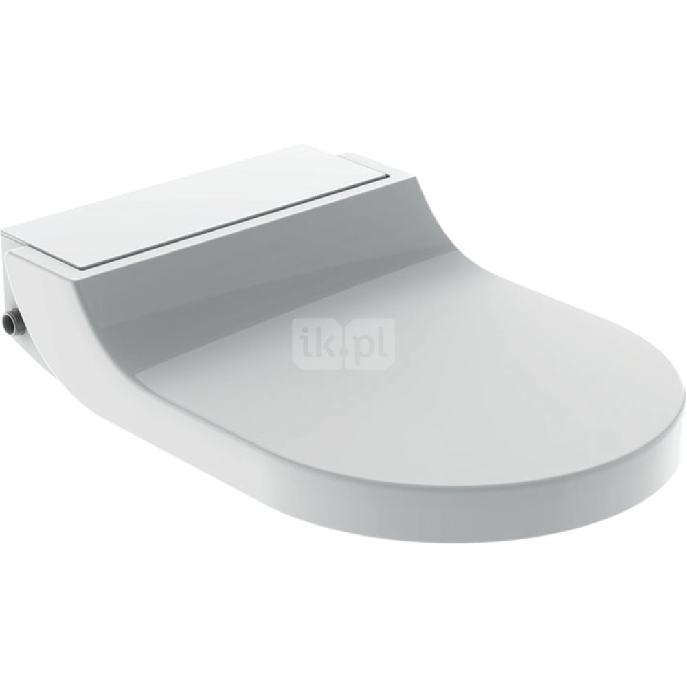 Podgrzewanie wody przez podgrzewacz przepływowy. Dysza główna z technologią natrysku WhirlSpray. Wysuwane ramię natryskowe z dyszą do mycia intymnych obszarów ciała. Możliwość regulacji intensywności strumienia w pięciu stopniach. Oscylujący strumień wody (automatyczna regulacja ruchu ramienia natryskowego do przodu i do tyłu). Automatyczne czyszczenie dyszy wodą przed i po użyciu dyszy natryskowej. Program odkamieniania. Siedzisko i pokrywa deski sedesowej z wolnym opadaniem. Pokrywa deski sedesowej z funkcją SoftOpening. Przyłącze wody z boku z lewej strony. Przyłącze elektryczne z tyłu, zakryte, możliwość ułożenia przewodów po lewej lub po prawej stronie. Przewód sieciowy z możliwością skrócenia. Zgodność z (DIN) EN 1717 / (DIN) EN 13077. Kompatybilny z aplikacją Geberit Home. Możliwość regulacji temperatury wody natrysku za pomocą aplikacji Geberit Home. Możliwość wyłączenia podgrzewacza za pomocą aplikacji Geberit Home. Możliwość ustawienia ramienia natryskowego w pięciu położeniach za pomocą aplikacji Geberit Home