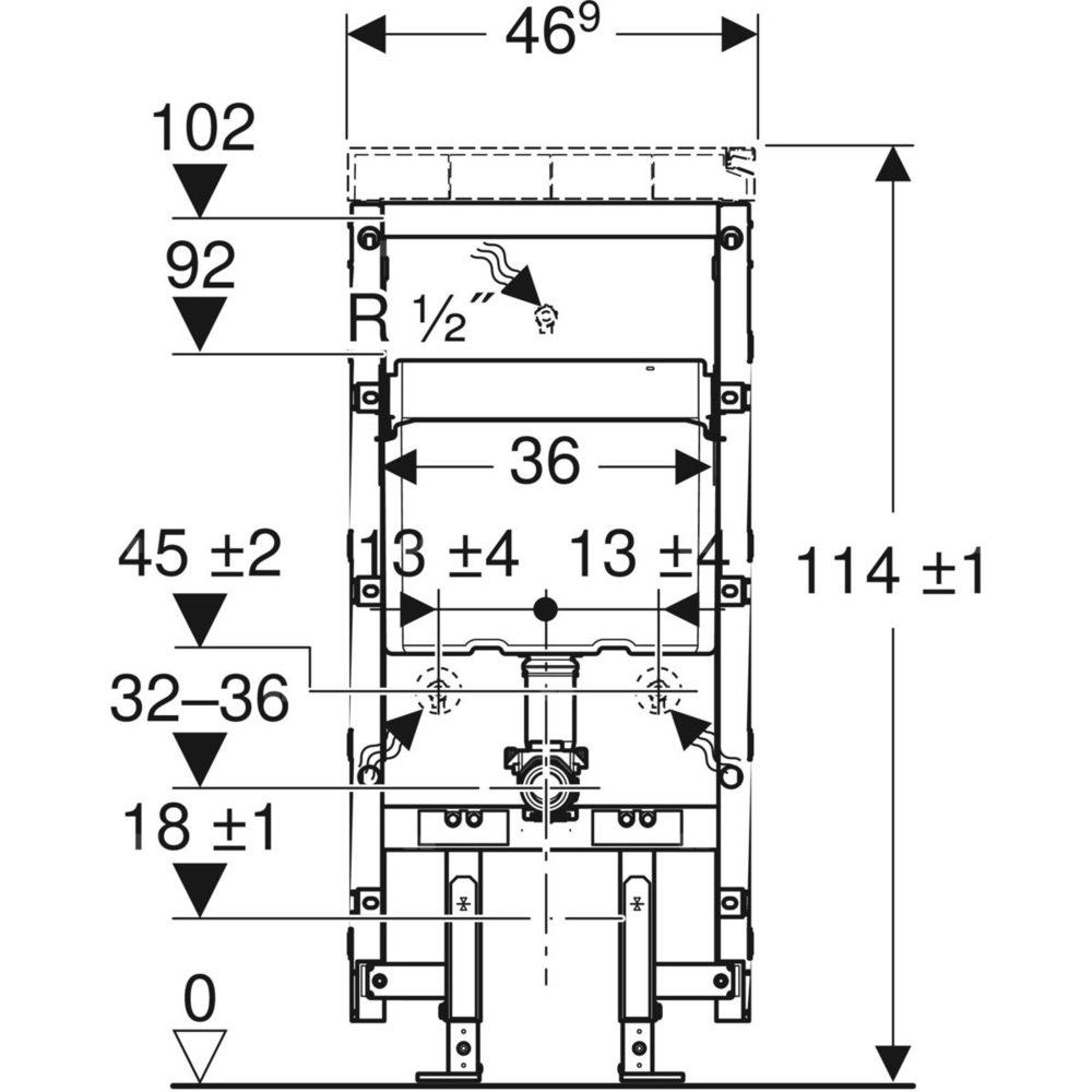 Moduł sanitarny do WC wiszącego GEBERIT Monolith, 1140 mm x 505 mm x 106 mm, regulacja wysokości, front: indywidualizowany, bok: indywidualizowany