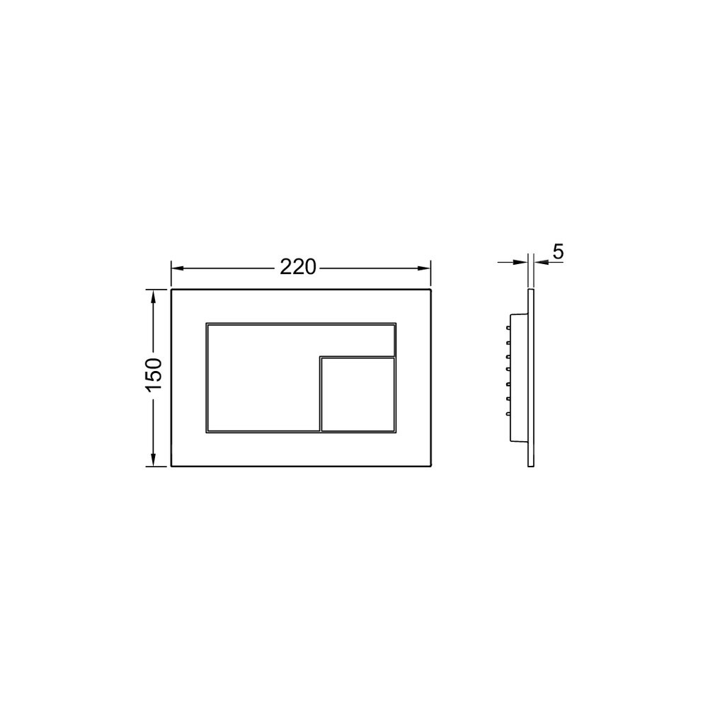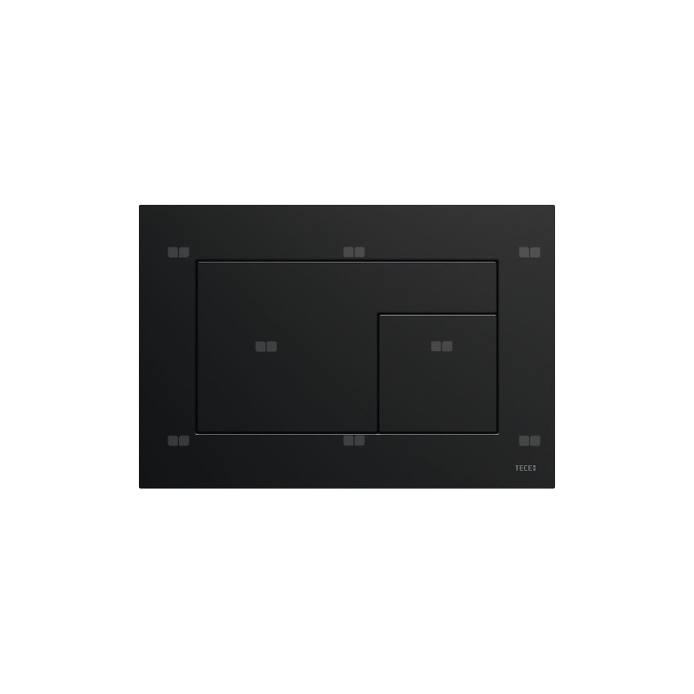 Przycisk spłukujący do spłuczek TECE uruchamiany z przodu lub od góry. Bardzo płaski przycisk spłukujący z powierzchnią FENIX NTM (FENIX® firmy Arpa Industriale). Powierzchnia dotykowa Matte Soft zapobiegająca zostawaniu odcisków palców. Przyciski spłukujące z gumowymi podkładkami, z drążkami uruchamiającymi i materiałami montażowymi. Odpowiedni do montażu w zabudowie mokrej w połączeniu z ramką montażową do WC i ramką dystansową. Kompatybilny z płytką maskującą z koszem na kostki czyszczące
