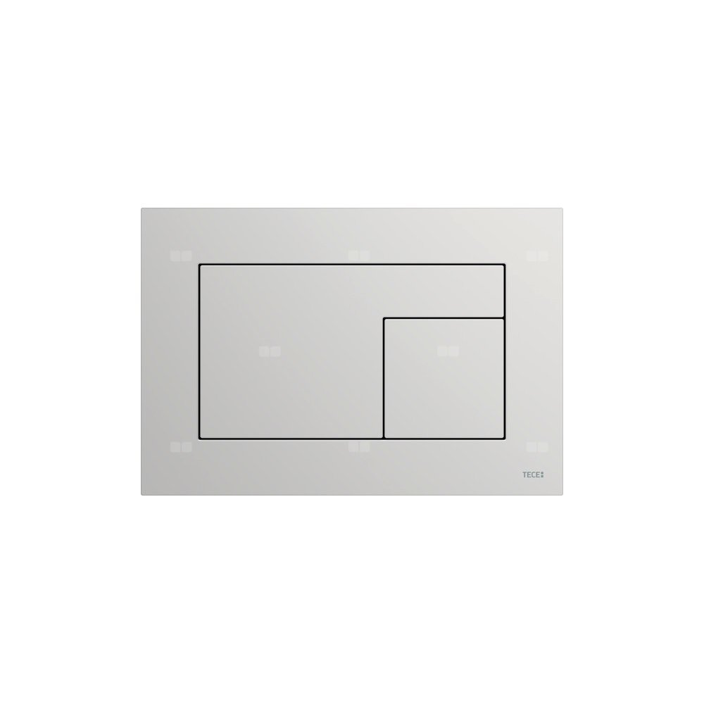 Przycisk spłukujący do spłuczek TECE uruchamiany z przodu lub od góry. Bardzo płaski przycisk spłukujący z powierzchnią FENIX NTM (FENIX® firmy Arpa Industriale). Powierzchnia dotykowa Matte Soft zapobiegająca zostawaniu odcisków palców. Przyciski spłukujące z gumowymi podkładkami, z drążkami uruchamiającymi i materiałami montażowymi. Odpowiedni do montażu w zabudowie mokrej w połączeniu z ramką montażową do WC i ramką dystansową. Kompatybilny z płytką maskującą z koszem na kostki czyszczące