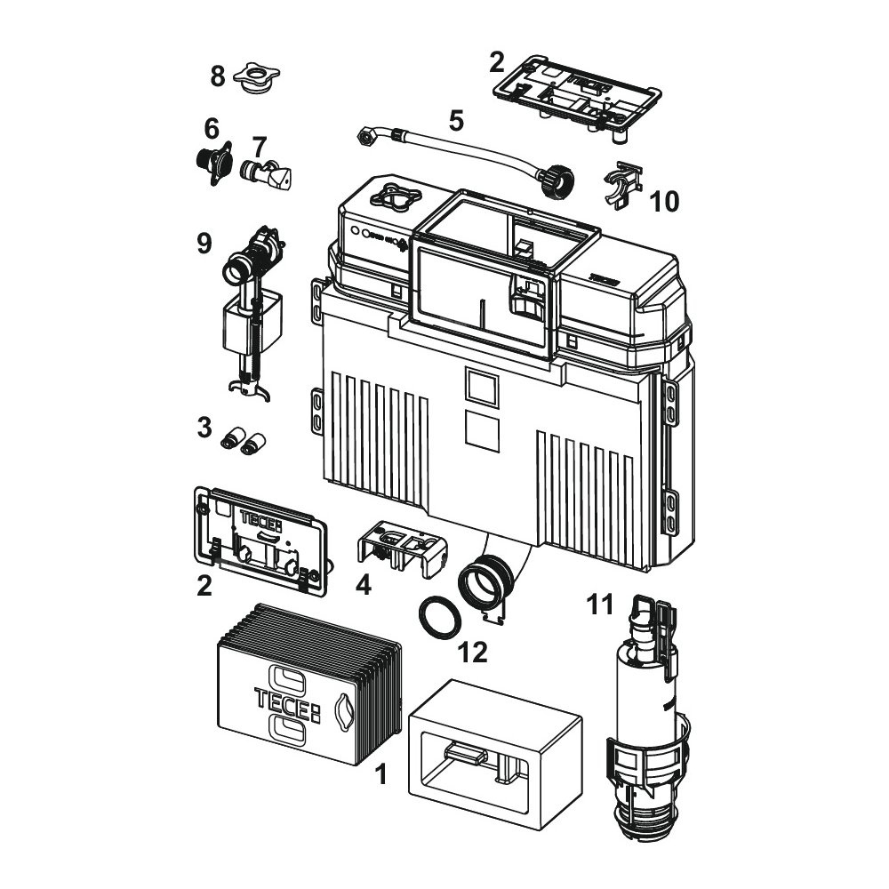 Spłuczka podtynkowaTECETECE, 522 x 485 x 141 mm, uruchamiana od góry, uruchamiana od przodu, z kolanem odpływowym 50mm