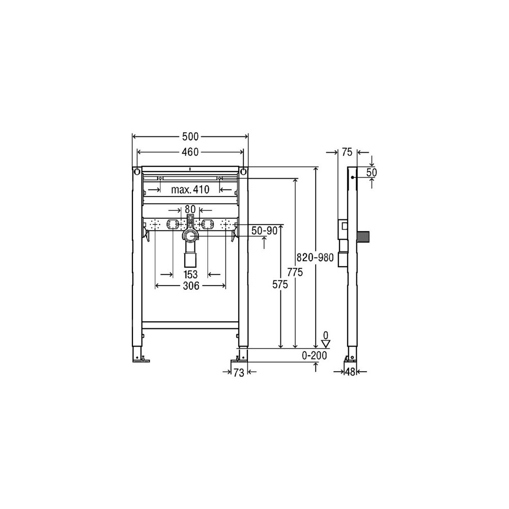 Stelaż podtynkowy do umywalki VIEGA 8535.31, 820 x 500 x 75 mm, bateria: stojąca, regulacja wysokośći, regulacja szerokości