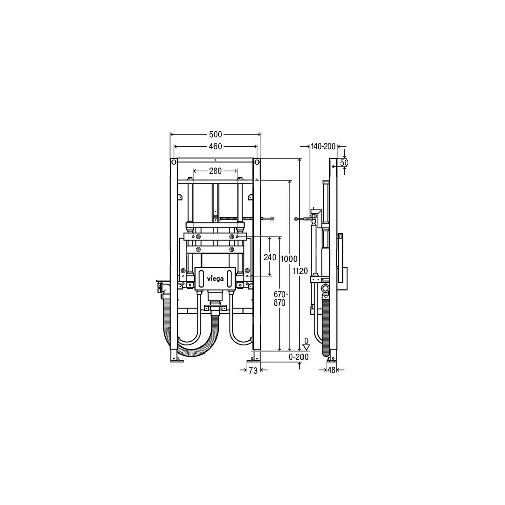 Stelaż podtynkowy do umywalki VIEGA 8535.32, 1120 x 500 x 140 mm, bateria: stojąca, regulacja wysokośći, wbudowany syfon