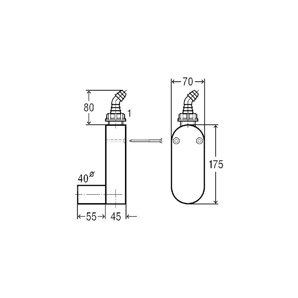 Syfon przeznaczenie: montaż ścienny, wąż odprowadzający wodę z pralki lub zmywarki do naczyń, tworzywo sztuczne, nr wzoru 5636 DN: 40