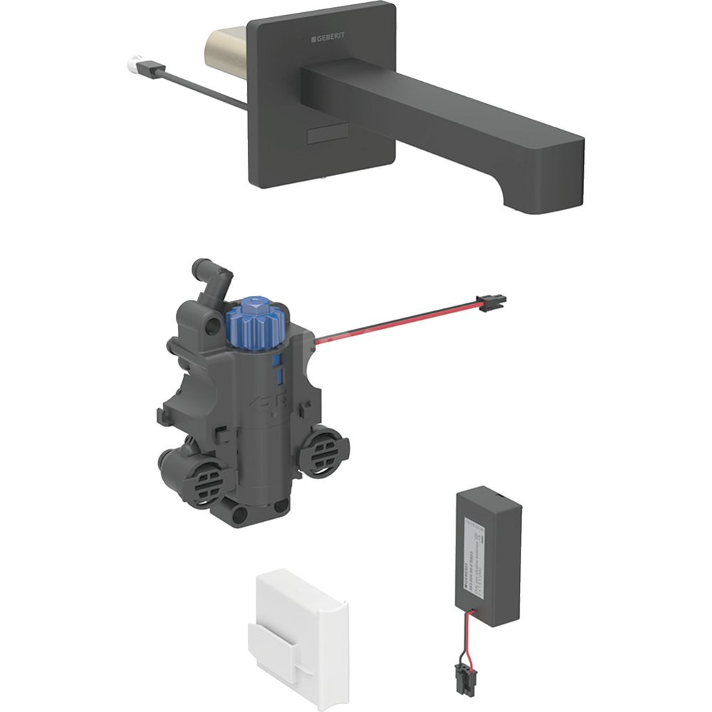 Bateria umywalkowa Geberit Brenta, ścienna, zasilanie bateryjne, do podtynkowej skrzynki funkcyjnej, z mieszaczem termostatycznym, L=17cm, czarny mat