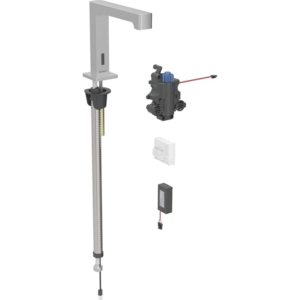 Bateria umywalkowa Geberit Brenta, stojąca, zasilanie bateryjne, do podtynkowej skrzynki funkcyjnej, z mieszaczem termostatycznym, stal nierdzewna