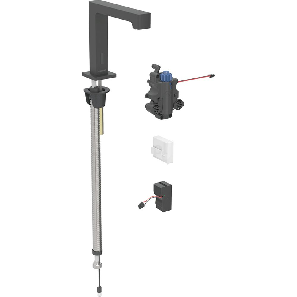 Bateria umywalkowa Geberit Brenta, stojąca, zasilanie sieciowe, do podtynkowej skrzynki funkcyjnej, z mieszaczem termostatycznym, czarny mat