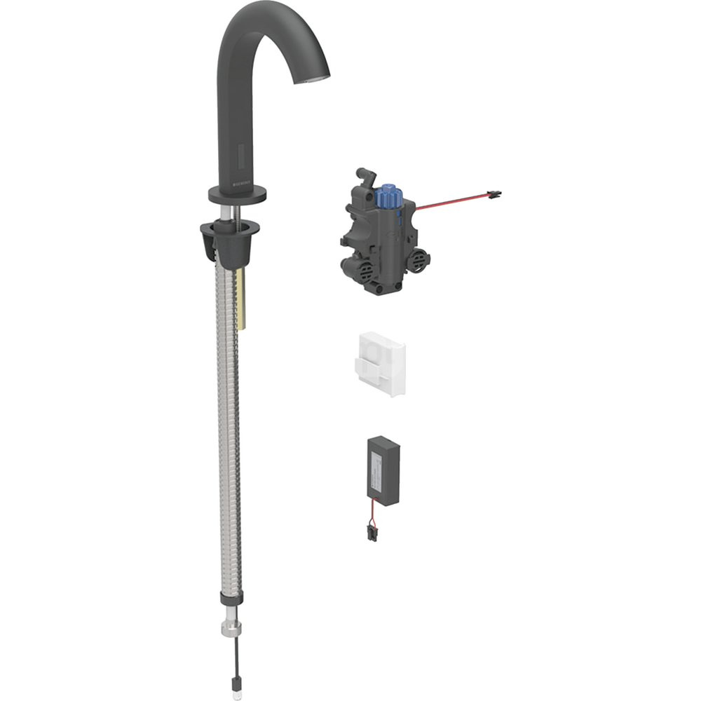 Bateria umywalkowa Geberit Piave, stojąca, zasilanie bateryjne, do podtynkowej skrzynki funkcyjnej, z mieszaczem termostatycznym, czarny mat