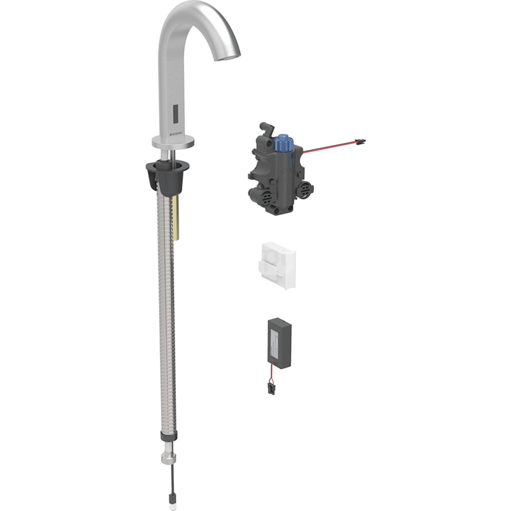 Bateria umywalkowa Geberit Piave, stojąca, zasilanie bateryjne, do podtynkowej skrzynki funkcyjnej, z mieszaczem termostatycznym, stal nierdzewna