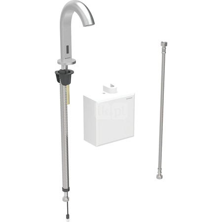 Bateria umywalkowa Geberit Piave, stojąca, zasilanie bateryjne, z natynkową skrzynką funkcyjną, bez mieszacza, stal nierdzewna