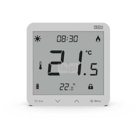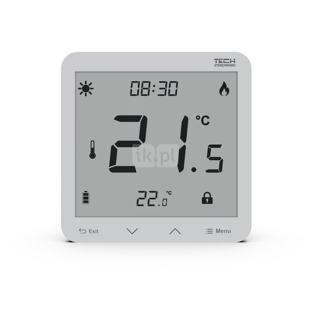 Bezprzewodowy bateryjny natynkowy regulator pokojowy dwustanowy (panel przedni ze szkła) biały, model T-3.2