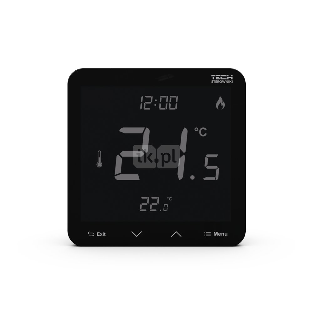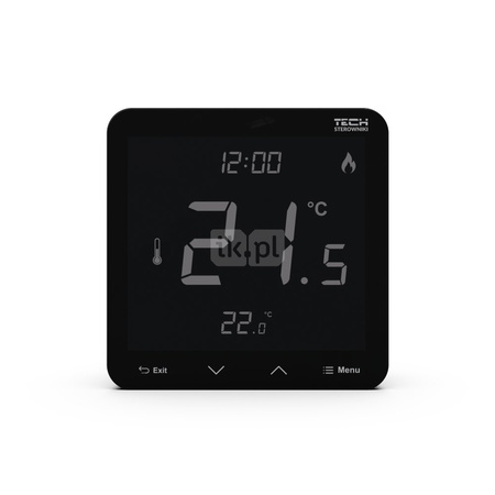 Bezprzewodowy bateryjny natynkowy regulator pokojowy dwustanowy (panel przedni ze szkła) czarny, model T-3.2