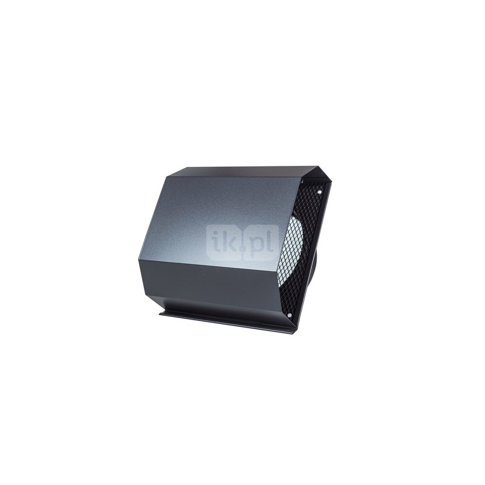 Czerpnia wykonana z blachy ocynkowanej, malowana proszkowo na kolor grafitowy, z okapnikiem chroniącym elewację przed zabrudzeniami, wyposażona w siatkę zabezpieczającą przed owadami.