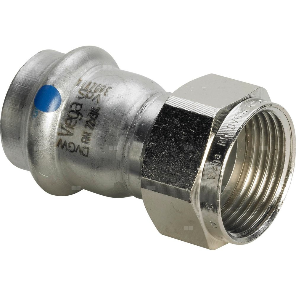 Sanpress Inox LF-dwuzłączka przyłączeniowa z SC‑Contur labs-frei (odtłuszczone) (opakowanie pojedyncze), stal nierdzewna, przyłącze zaprasowywane, gwint G, uszczelnienie płaskie.