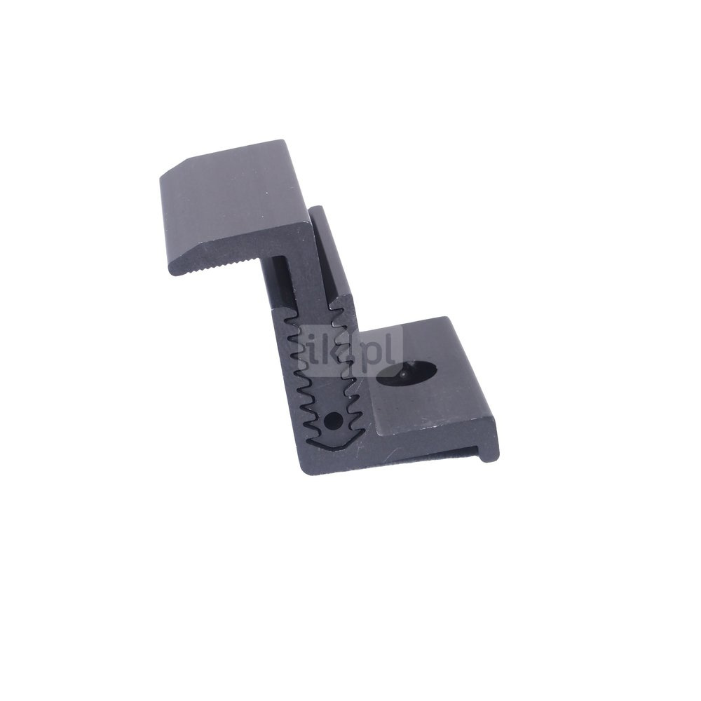 Klema końcowa przeznaczona do łączenia ramy panela fotowoltaicznego z szyną montażowa .