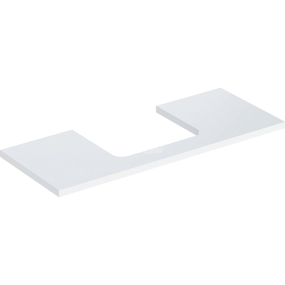 Geberit ONE Blat pod umywalkę, wycięcie na środku, do prostokątnej umywalki stawianej na blat, B120cm, H3cm, T47cm, biały, wysoki połysk