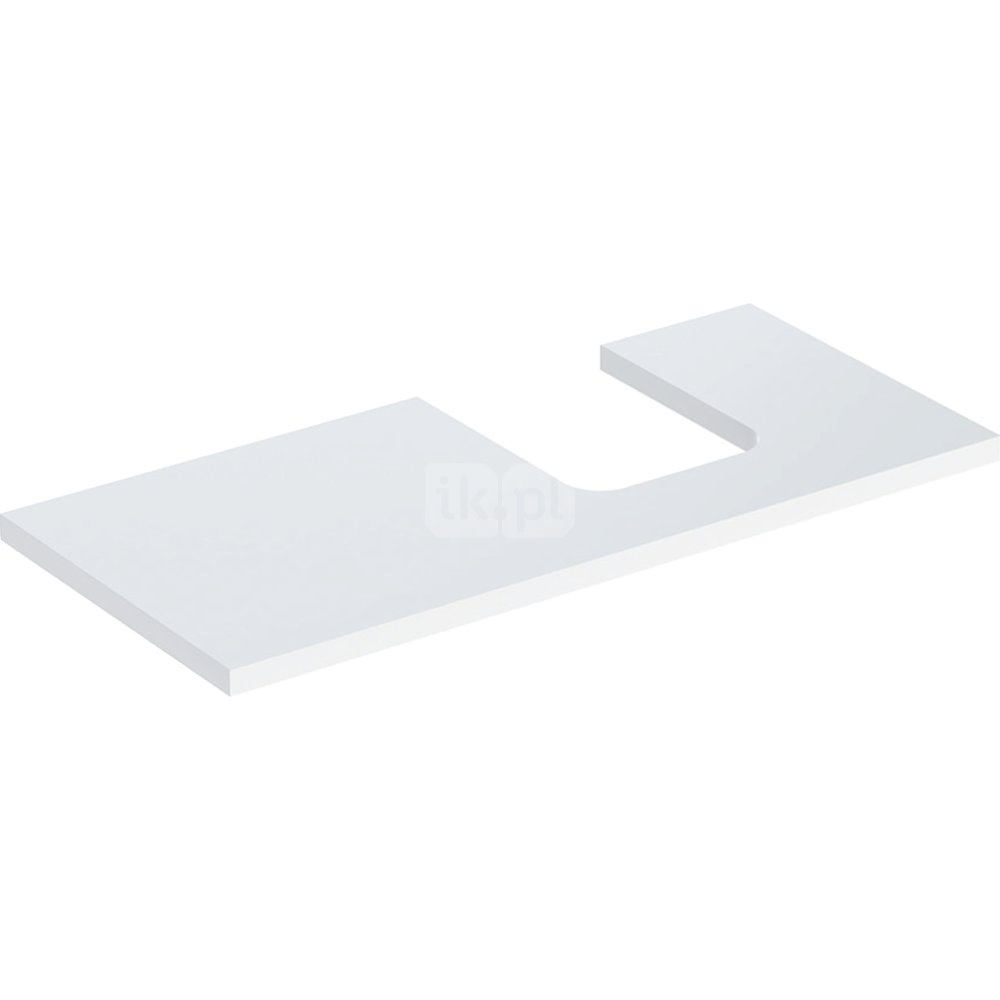 Geberit ONE Blat pod umywalkę, wycięcie z prawej strony, do umywalki stawianej na blat w kształcie misy, B105cm, H3cm, T47cm, biały, wysoki połysk