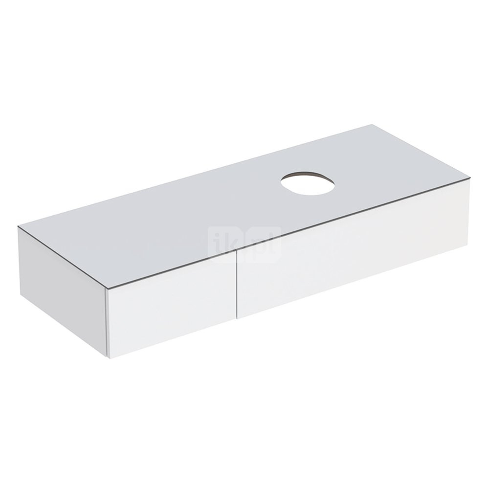 Geberit Variform Szafka pod umywalkę stawianą na blat, B135cm, H23.5cm, T51cm, z dwoma szufladami, powierzchnią odkładczą i syfonem, biały, z powłoką melaminową, matowa