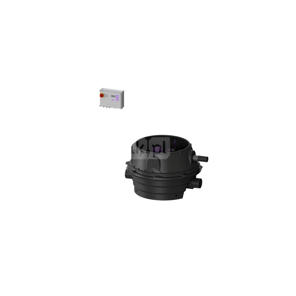KESSEL Przepompownia przeciw. Ecolift XL, ścieków Ścieki bez fekaliów, zabudowa w ziemi, urządzenie dwupompowe, z 2 SPF 1500 pomp zatapialnych, typ pracy S1, czujnik alarmu z Sonda optyczna, sterownik Comfort Plus, Wariant z najniższą zabudową