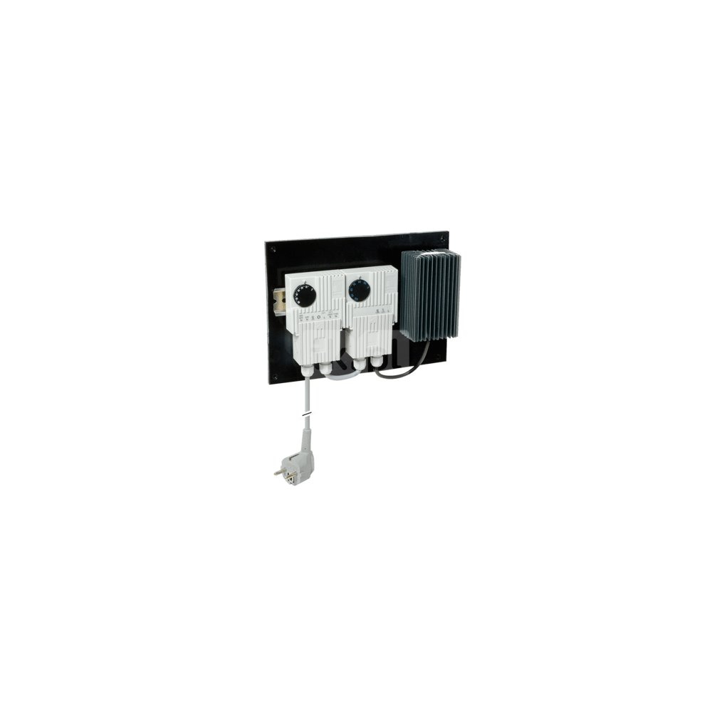 Zestaw do zabudowy termostatu / higrostatu w Szafka sterownicza zewnętrzna w celu redukcji kondensacji. Moduł składa się z ogrzewania, termostatu i higrostatu z płytą montażową.