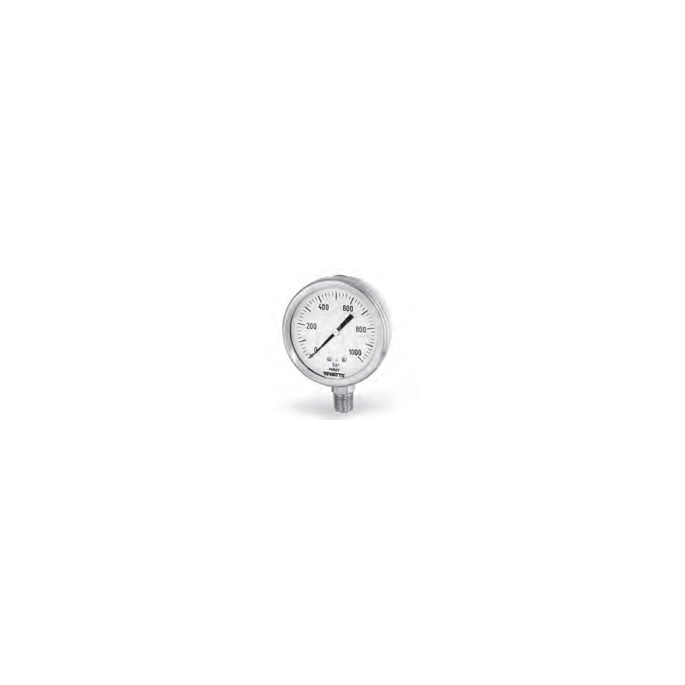 Manometr radialny (z przyłączem dolnym) do zastosowania w przemyśle: chemicznym, spożywczym, stocznowymi. Materiał: stal nierdzewna. Temp. do 150ºC, klasa 1.0/1.6